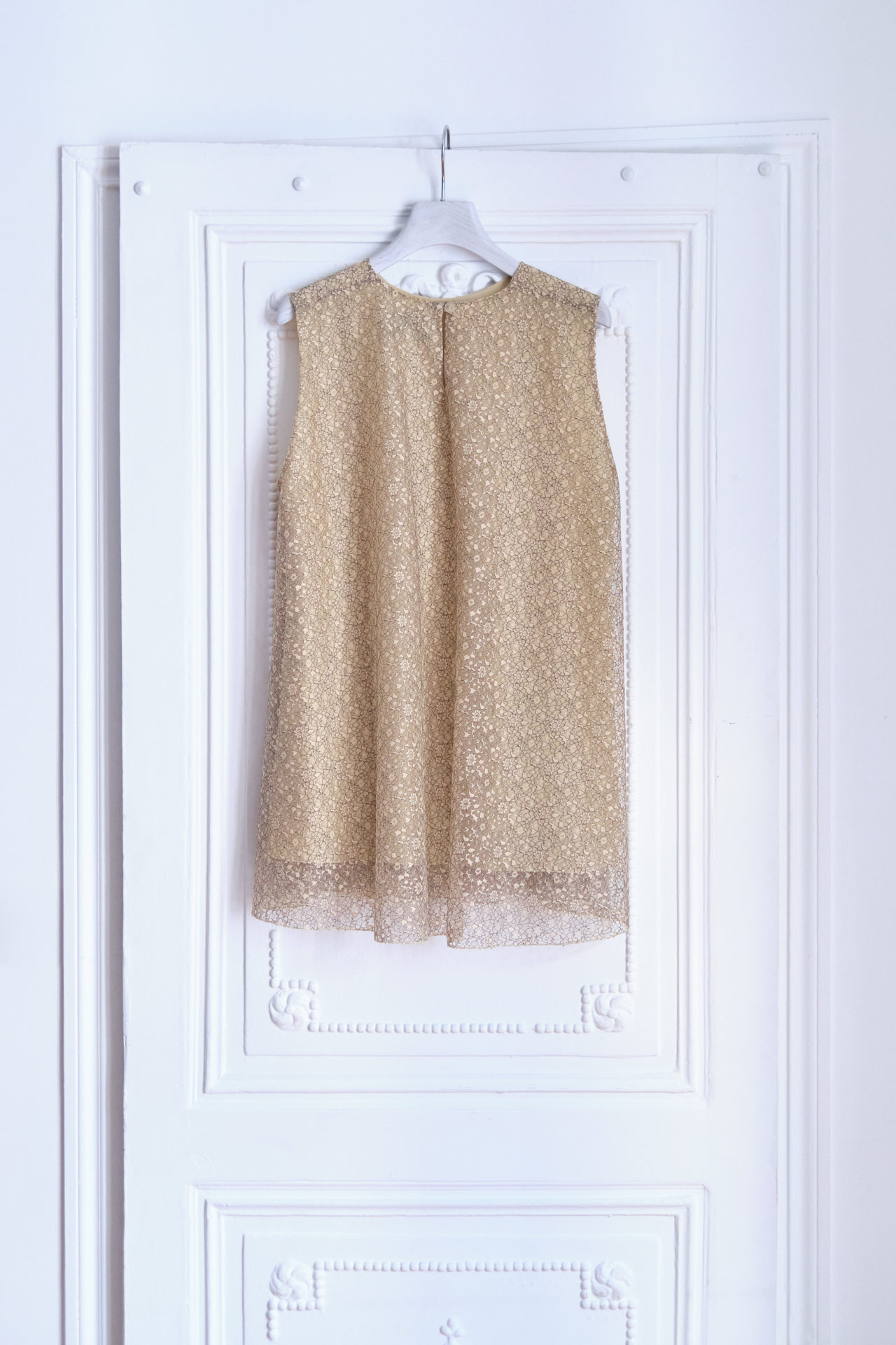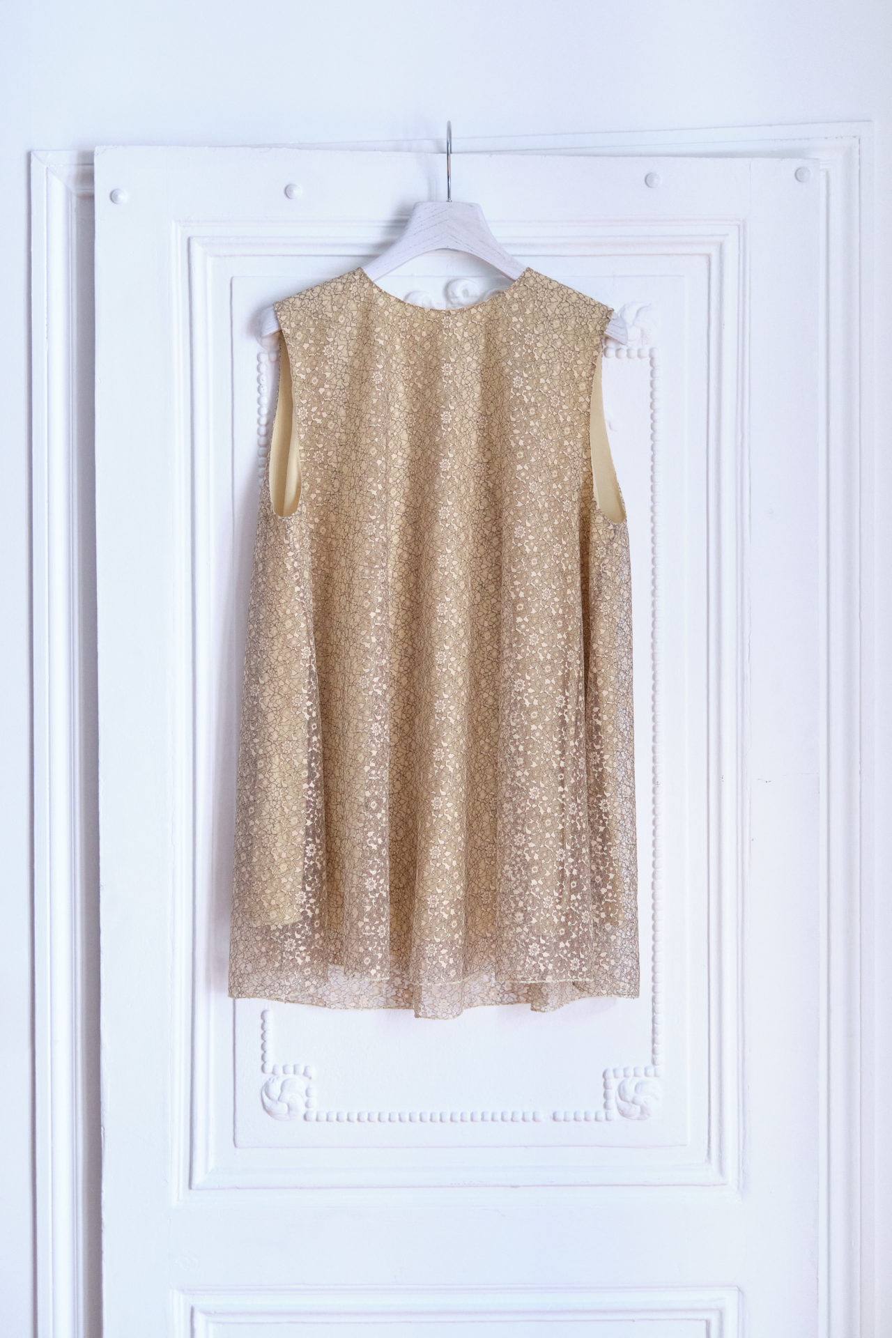 Ce top en superposition est inspiré du caftan marocain. Il se compose d’un top en soie, de coupe droite, surmonté d’un empiècement en fil coupé à la coupe volumineuse. Porté avec un pantalon droit, il sublimera vos tenues, de jour comme de nuit.