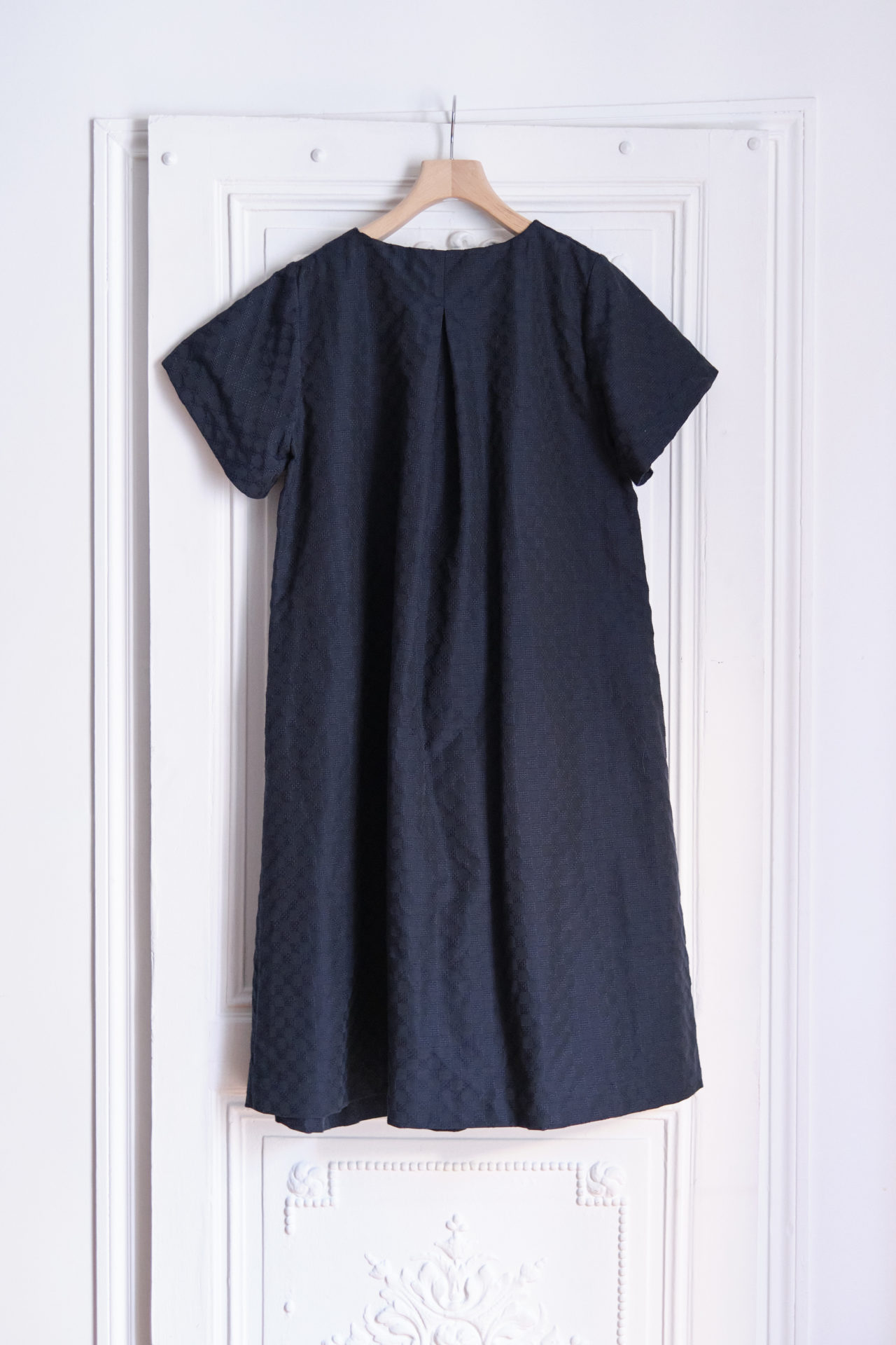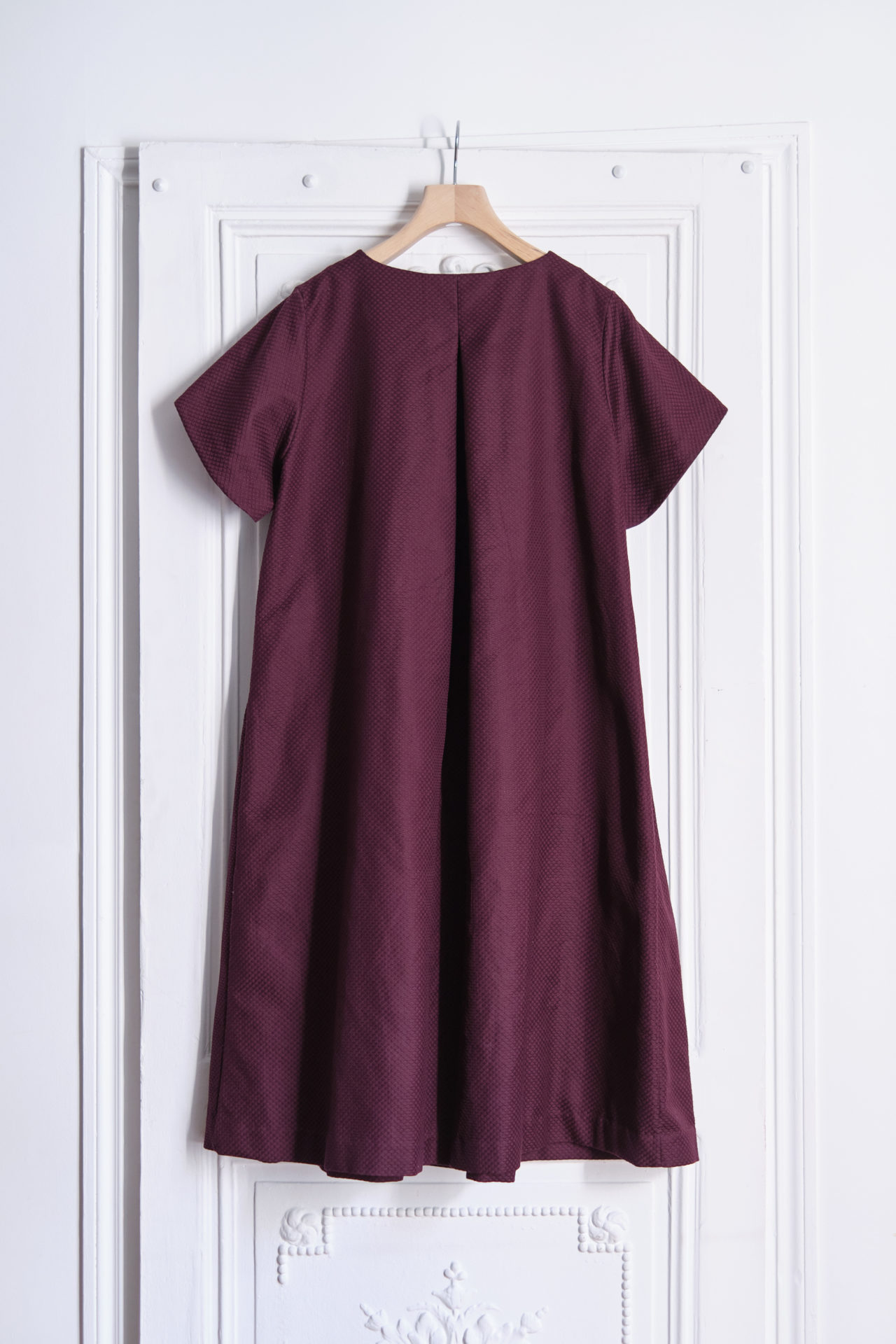Ample and structured cut for this midi dress whose waist is highlighted by gathers and whose back fold creates a train effect that amplifies the volume. A key piece in the collection, it pays homage to the island of Ischia by conveying both its softness and casualness but also its imposing beauty. It can be worn in the city, at the office or in the evening, with pumps, flats or boots.