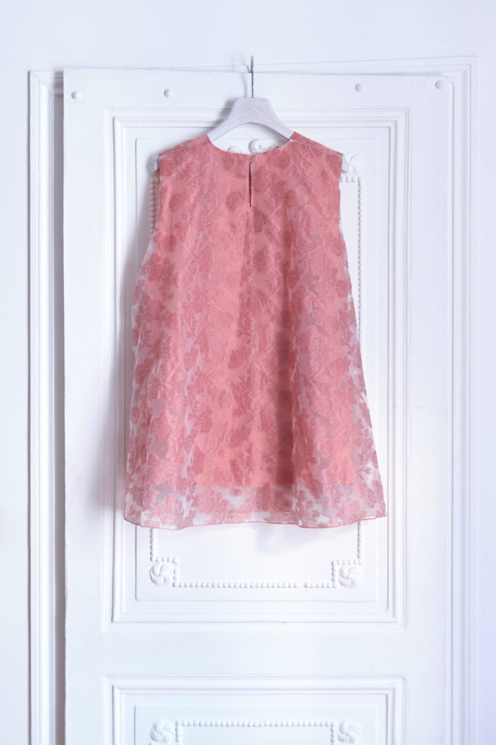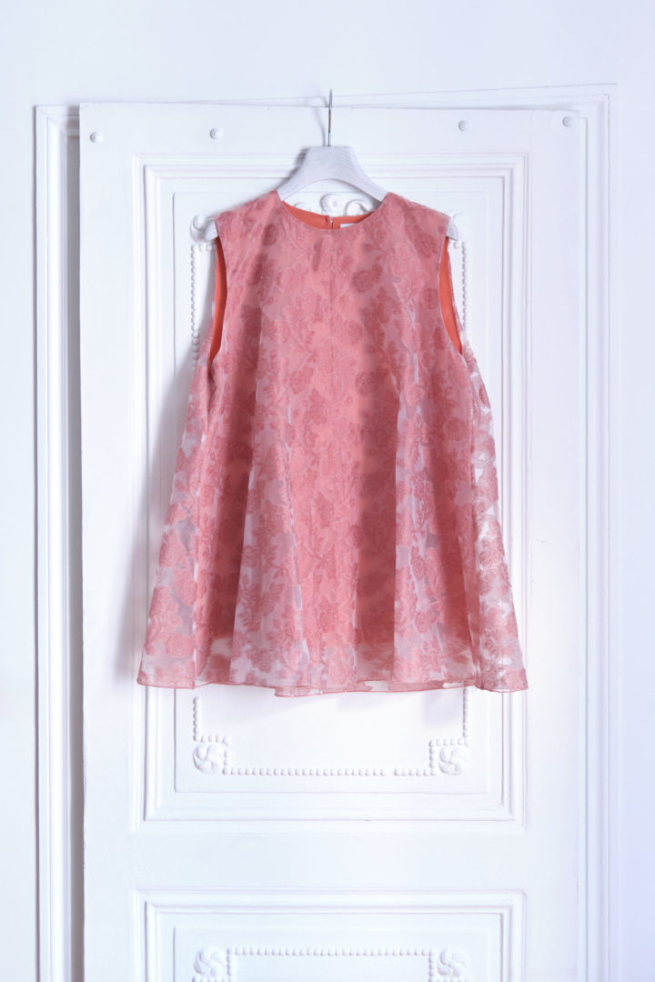 This layered top is inspired by the Moroccan caftan. It consists of a silk top with a straight cut, topped with a voluminous cut thread yoke. Worn with straight pants, it will sublimate your outfits, day and night.